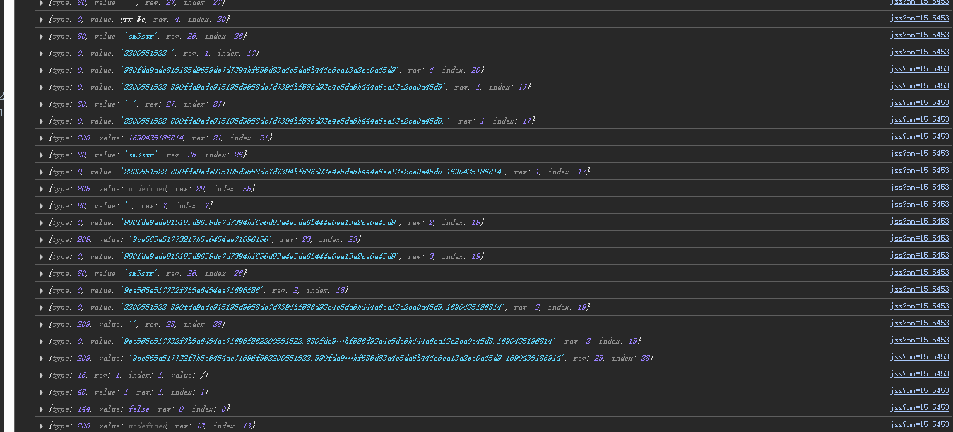XMLHttpRequest 用于发送http请求 open 用于设置请求方法GET/POST send 用于提交表单数据 将这些补全后会报错screen未定义,进入报错会发现这里是获取环境来构造这个keys这里就也没什么好说的从浏览器拿数据补就行了,先后补出screen,createElement,getContext,getExtension,getParameter,loseContext,setRequestHeader,将这些补齐代码就能一路到底运行了 你以为就结束了? 这才刚开始呢老弟,发现最终的结果和真实结果有很大的差距,这种就是陷入了蜜罐,基本上蜜罐得浏览器和本地联调的方法来找,但jsvmp有个缺陷,就是下限高,但上限达不到top。 一般的小几万行顺序执行的js代码找蜜罐能找到天昏地暗,但jsvmp不一样,可以直接比对插桩的输出日志,很快的发现和浏览器的差别