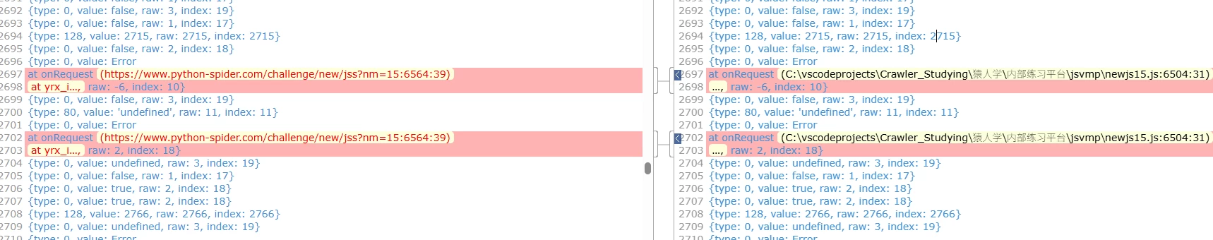 一般的小几万行顺序执行的js代码找蜜罐能找到天昏地暗,但jsvmp不一样,可以直接比对插桩的输出日志,很快的发现和浏览器的差别